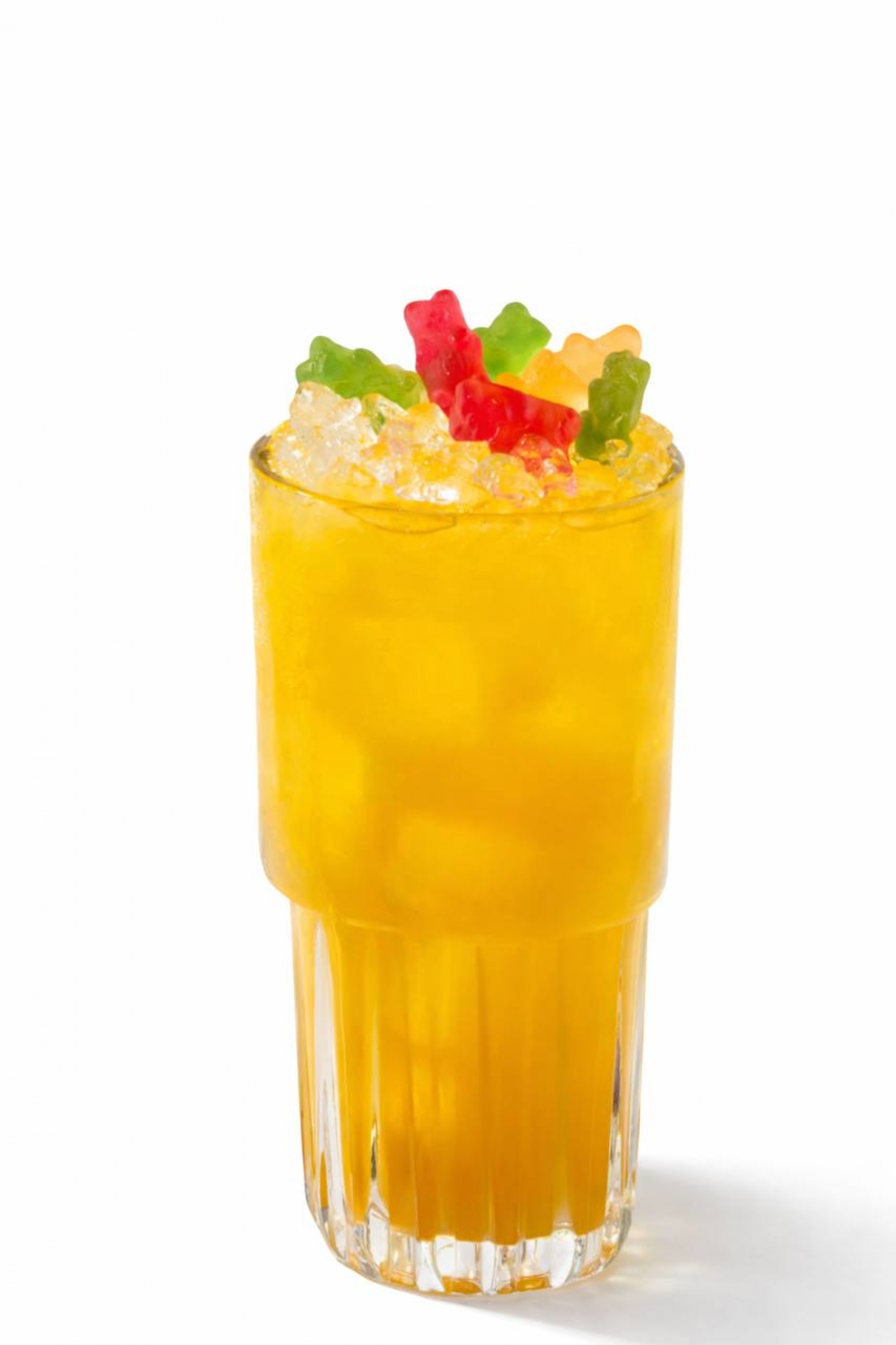 Виски, персиковый сок, сироп Маракуйя, лимонный сок, тоник, мармеладные мишки.
